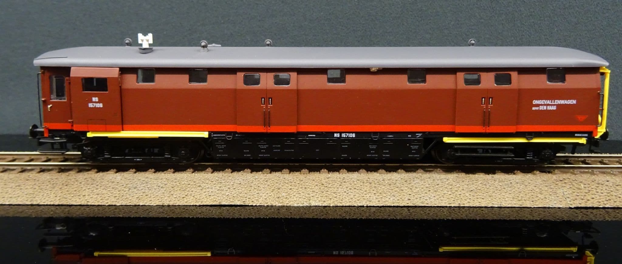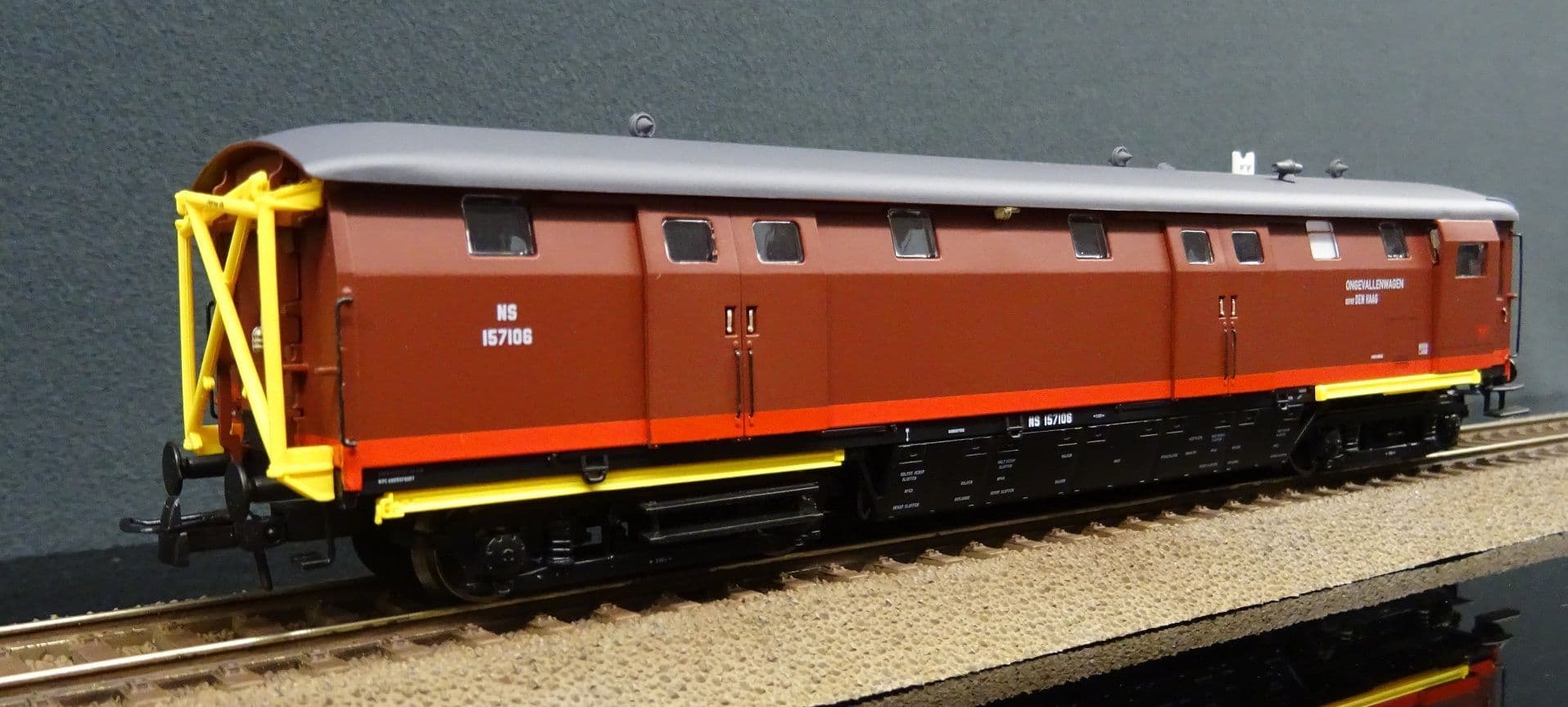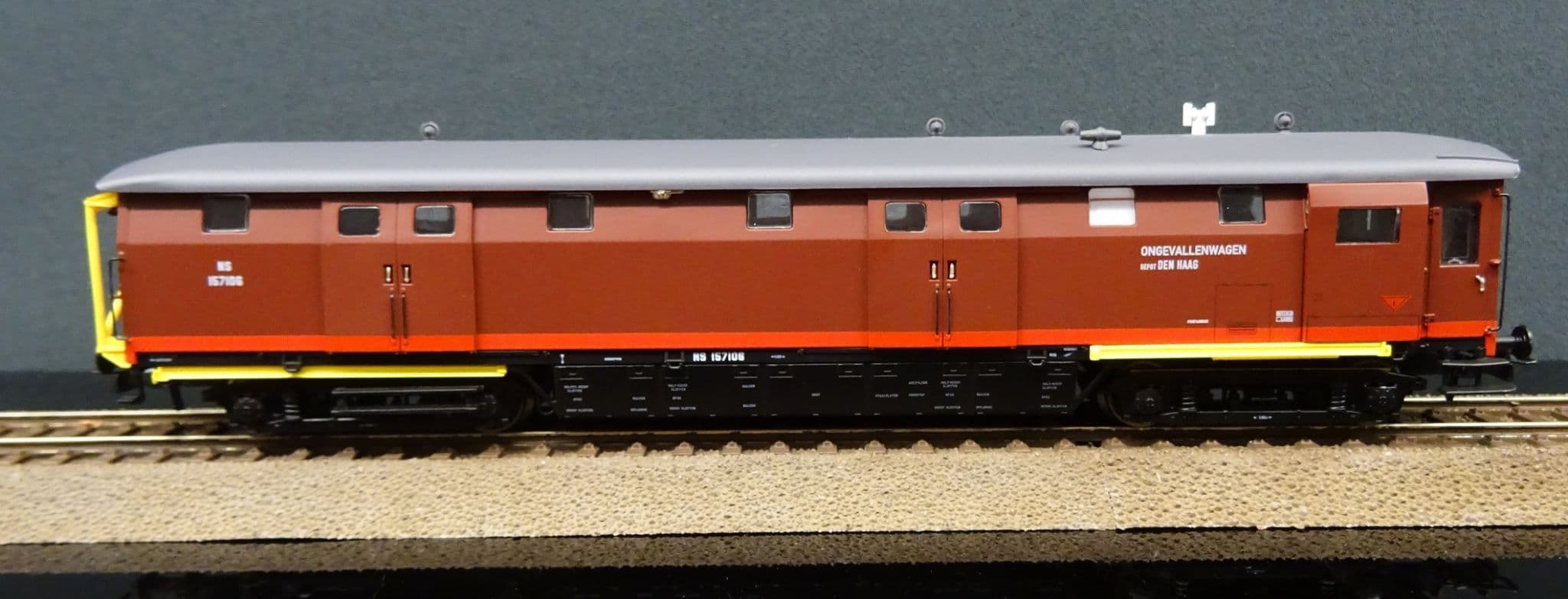 Between 1960 and 1962 the NS organised the conversion of 11 Stalen D baggage coaches into Maintenance and incident response vehicles. The corridor connectors were removed and a hoist fitted for handling heavy parts.