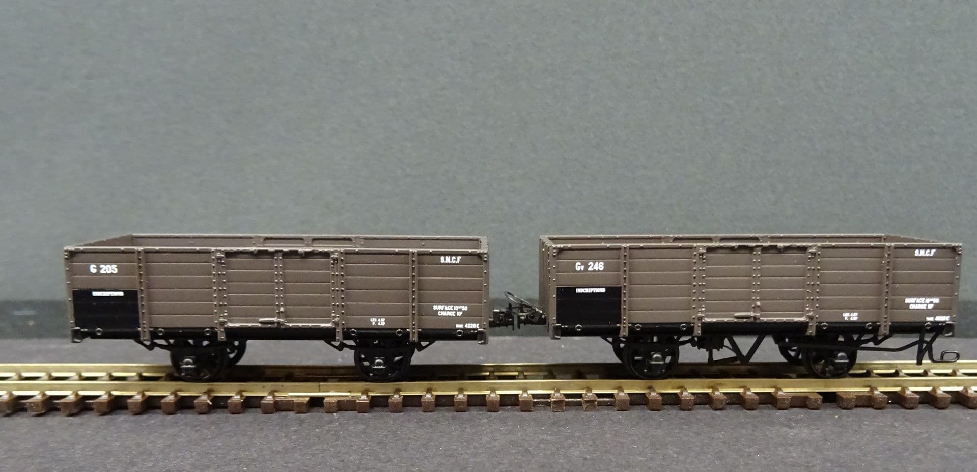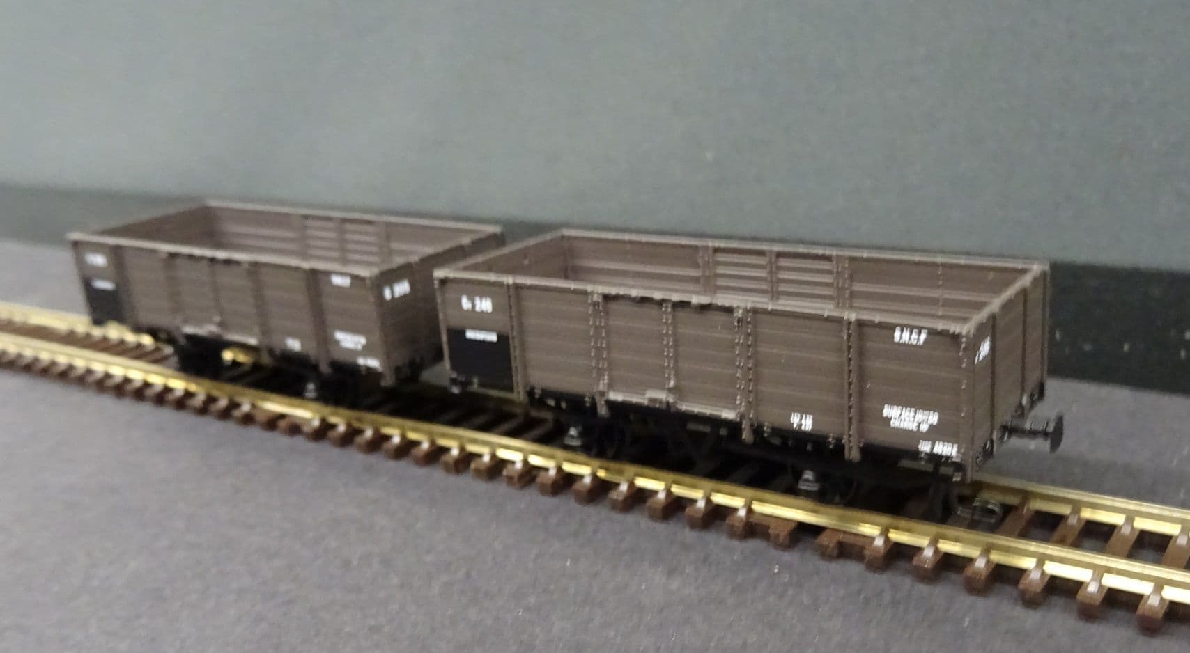 REE Les Secondaires  VM-034 Set of 2 Gondola Wagons with brakes. SNCF Brown  HOm (12mm) HOe