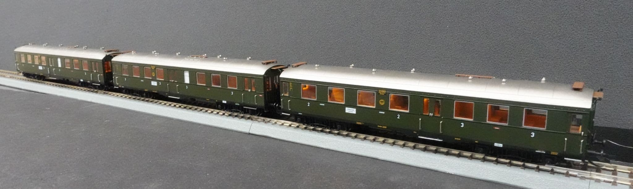 Roco 6280001 DRG Set of 3 Altenberg style coaches DC/DCC lights EpII. TT 1:120