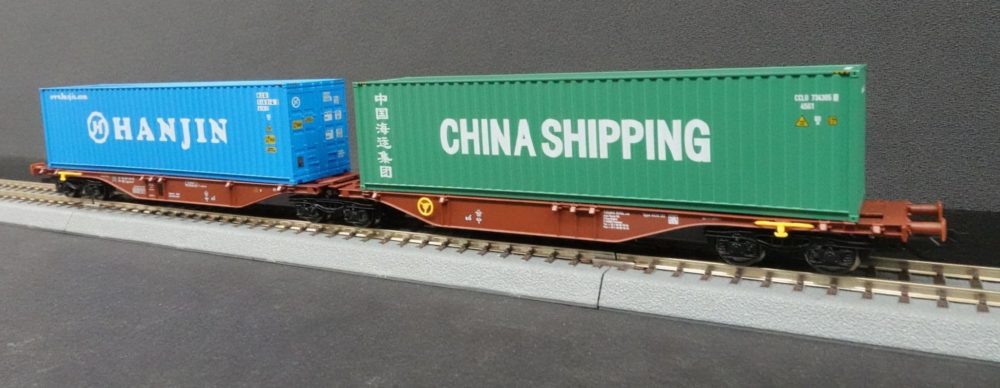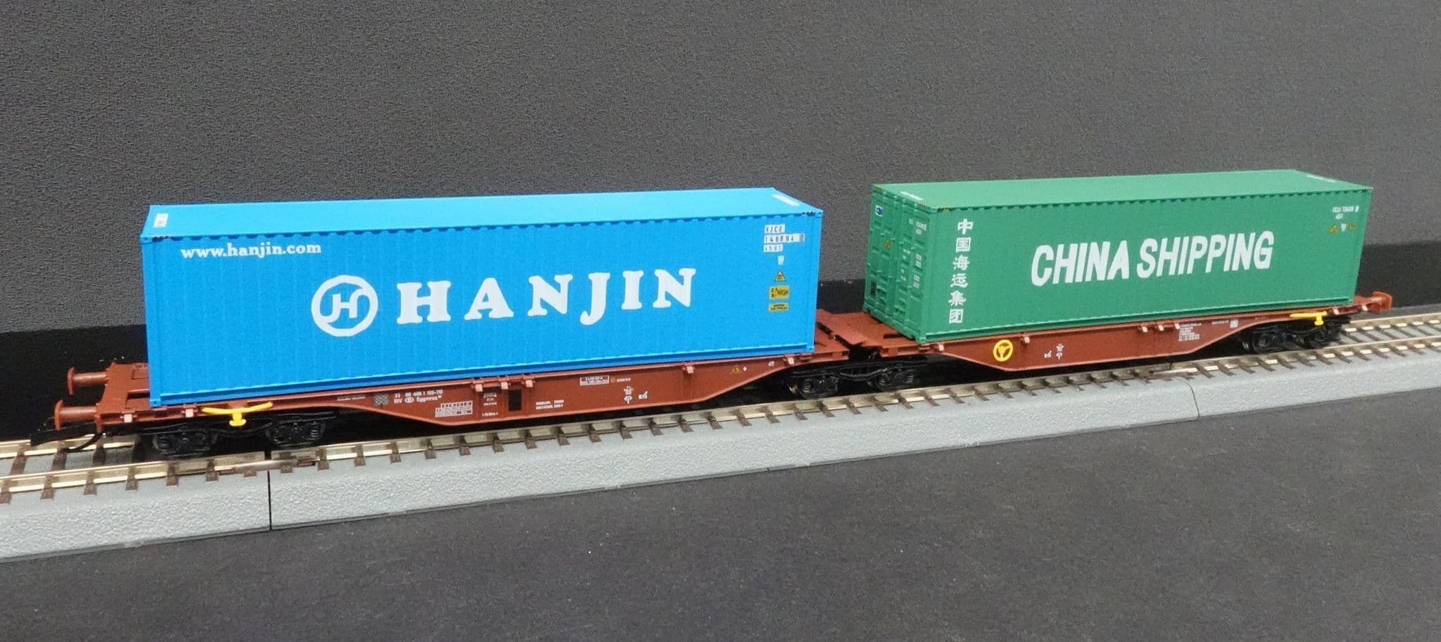 Tillig 18072 SNCB Double container wagon type Sggmrs Hanjin and China Shipping containers EpV/VI. TT 1:120